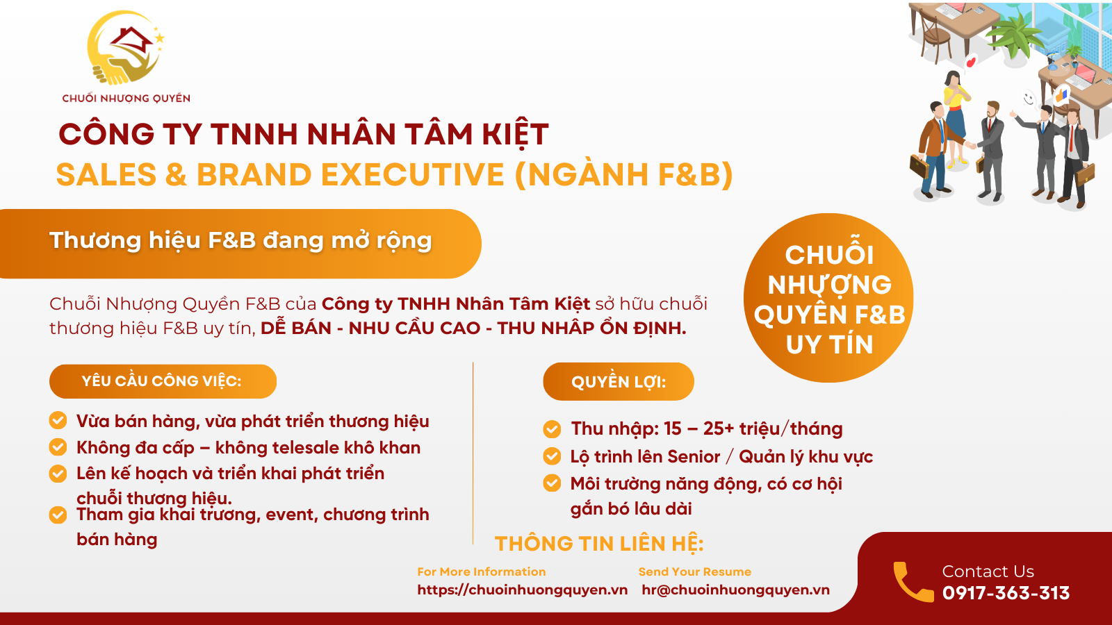 🔹 VỊ TRÍ: SALES & BRAND EXECUTIVE (NGÀNH F&B)