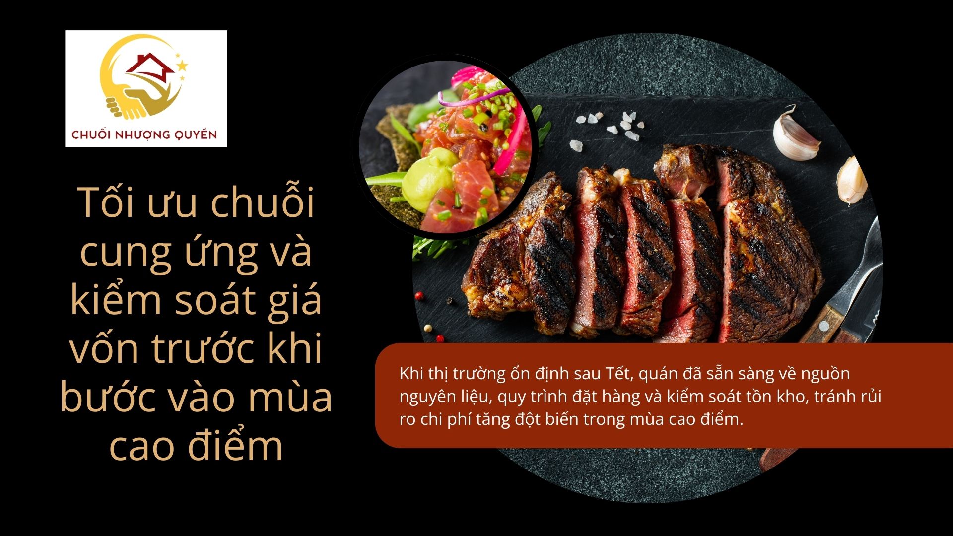Một lợi thế quan trọng khác của việc mở quán trước Tết là khả năng làm quen và tối ưu chuỗi cung ứng. Trong giai đoạn này, chủ quán có thể thử nghiệm với nhiều nhà cung cấp, đánh giá chất lượng nguyên liệu và điều chỉnh định lượng món ăn để đảm bảo biên lợi nhuận hợp lý. Dù chi phí đầu vào trước Tết có thể biến động, quá trình thử nghiệm này lại giúp quán xây dựng được hệ thống cung ứng phù hợp. Khi thị trường ổn định sau Tết, quán đã sẵn sàng về nguồn nguyên liệu, quy trình đặt hàng và kiểm soát tồn kho, tránh rủi ro chi phí tăng đột biến trong mùa cao điểm.